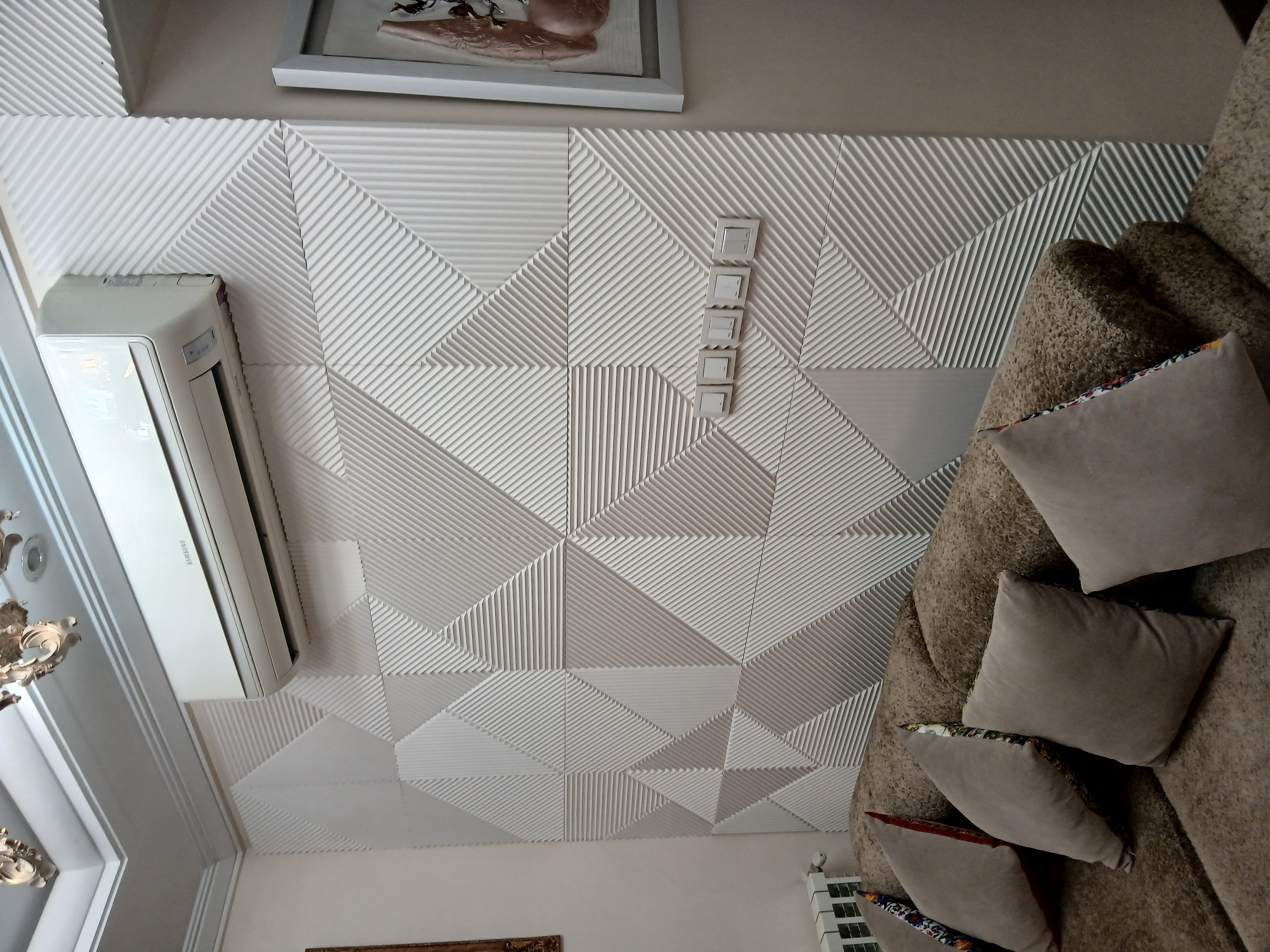 اجرای دیوارپوش طرح زیگزاگ در فضای داخلی